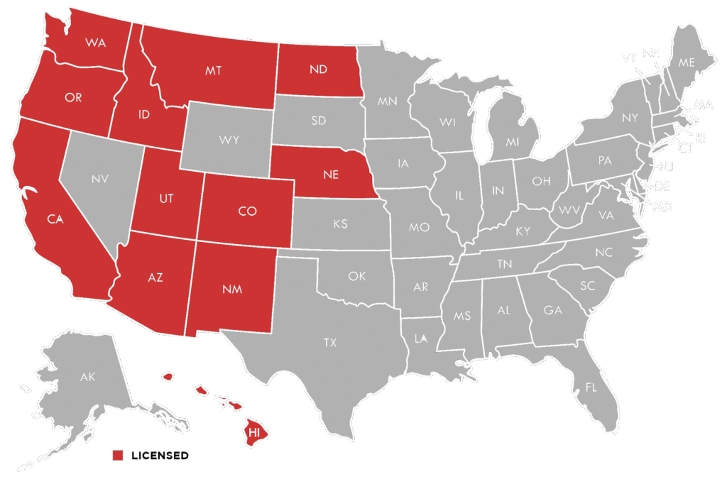 RED is currently licensed in the following states: California, Oregon, Washington, Arizona, New Mexico, Colorado, Utah, Idaho, Montana, North Dakota and Nebraska with Hawaii coming soon!